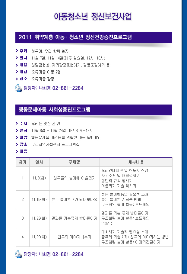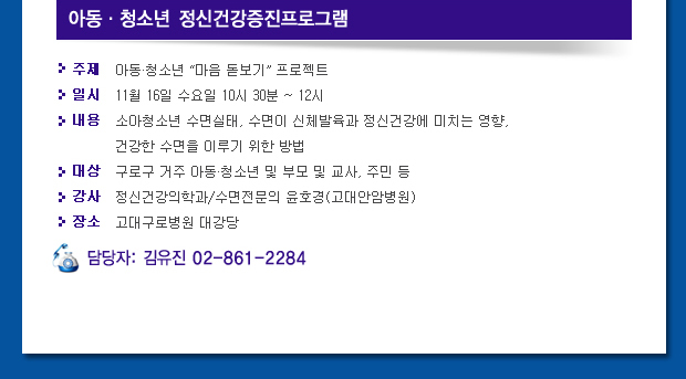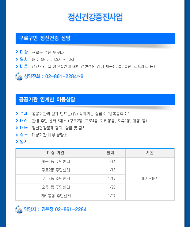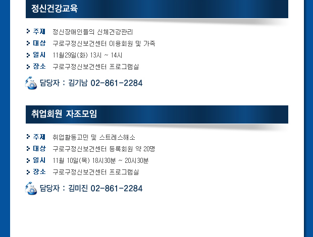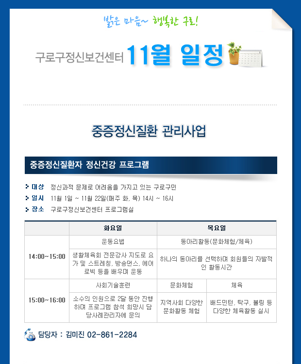 ±¸·Î±¸Á¤½Åº¸°Ç¼¾ÅÍ 11¿ù ÀÏÁ¤À» ¾È³»ÇÕ´Ï´Ù.